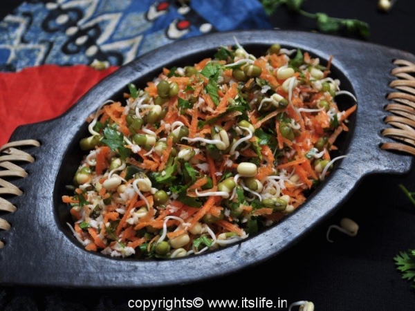 Hesarukalu Kosambari is a South Indian salad with sprouted green gram. A very healthy dish, this is usually prepared for lunch in most of the households.
