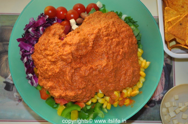 Crush Nachos and either mix in the salad or serve separately.