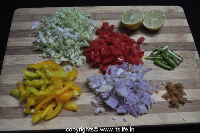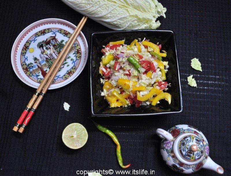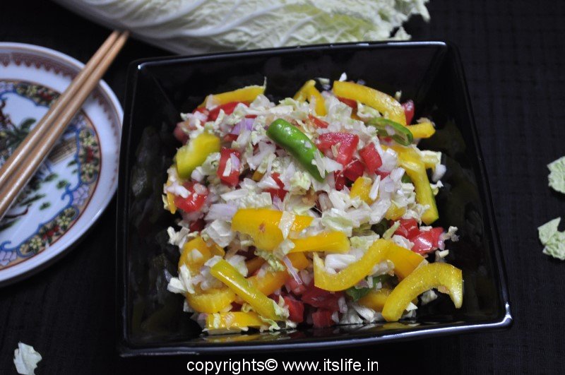 Oriental salad is prepared using Chinese Cabbage and other fresh ingredients. A very healthy salad, which is quick to make.