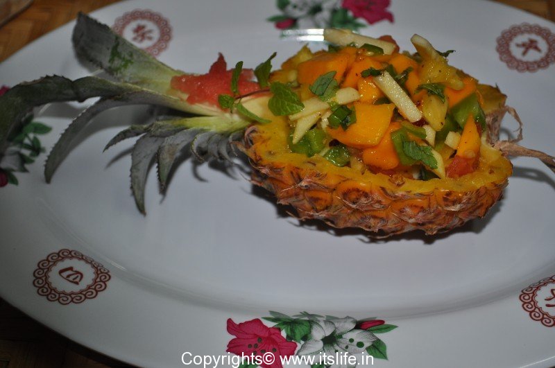 Fill the Pineapple shell with Pineapple Salad and serve.