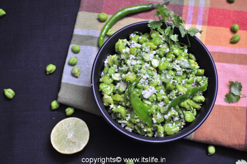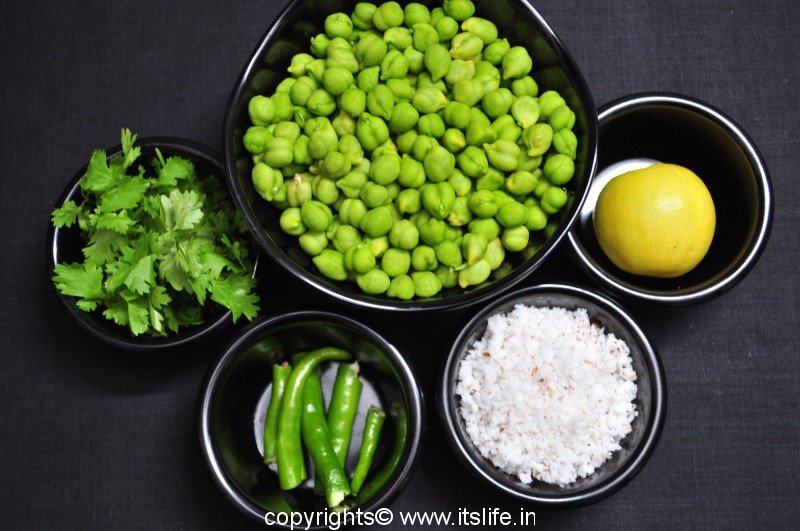Green tender Chickpea salad. The tender Chickpea is available during December – January in South India. The plants are sold along with the pods. It is fun to shell the pods to make a variety of dishes or to just pop it in the mouth and eat.