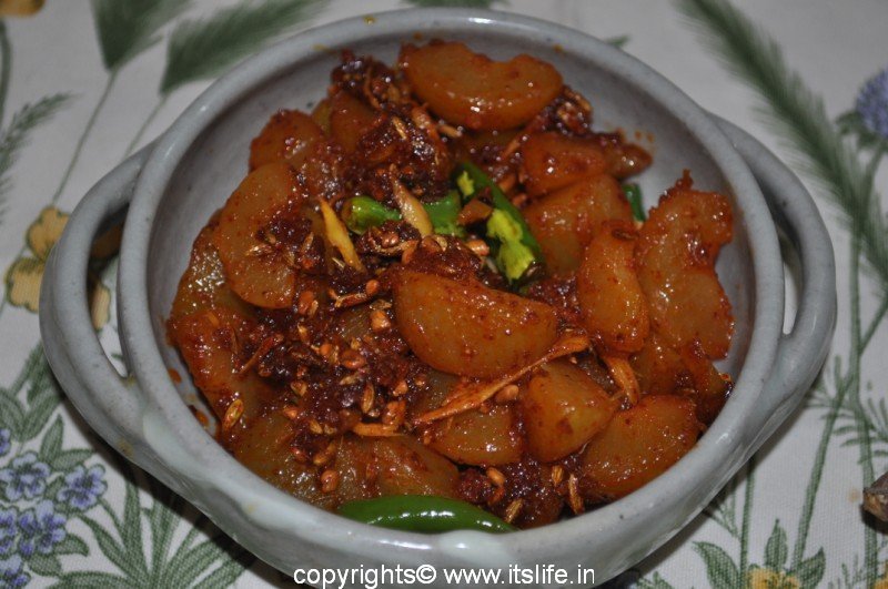 During the winters, Amla or Indian Gooseberry flood the markets. Various dishes are prepared using these. They are popularly pickled and very rarely cooked as a side dish. Here is a recipe using Indian Gooseberry, which is cooked and pickle spices are added to it.