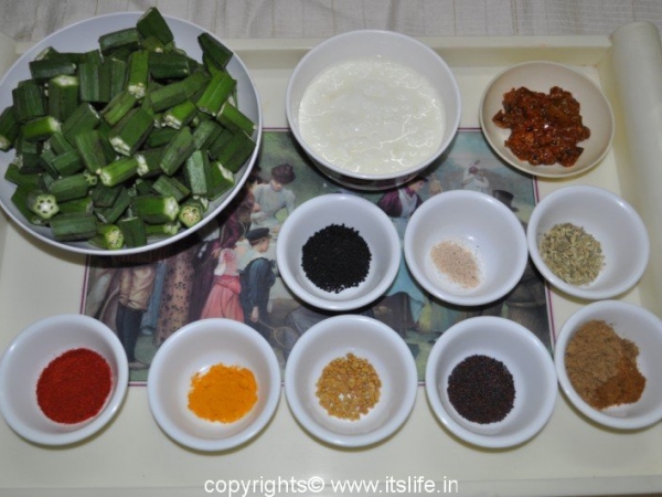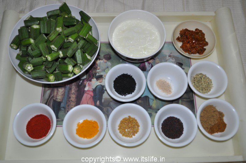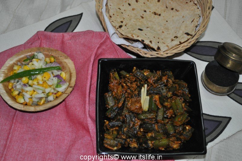 Achari bhindi is a side dish prepared using Okra / Ladies Finger with Pickle Masala.