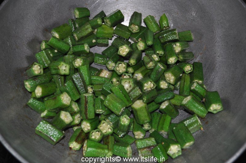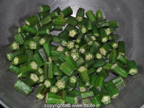Heat 2 tbsp Oil and fry Bhindi and keep aside.