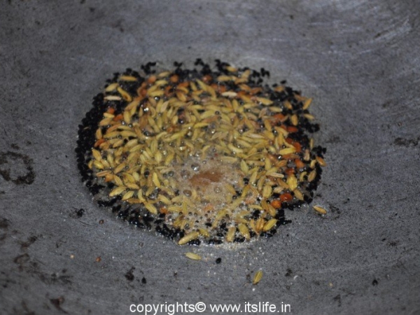 Heat 2 tbsp Oil and add Mustard Seeds, Saunf, Methi, and Kalonji. Add fried Bhindi.