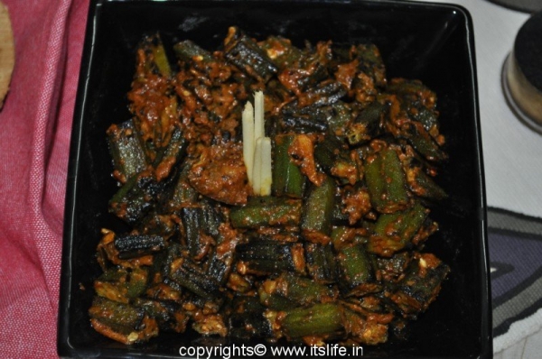 Achari bhindi is a side dish prepared using Okra / Ladies Finger with Pickle Masala.