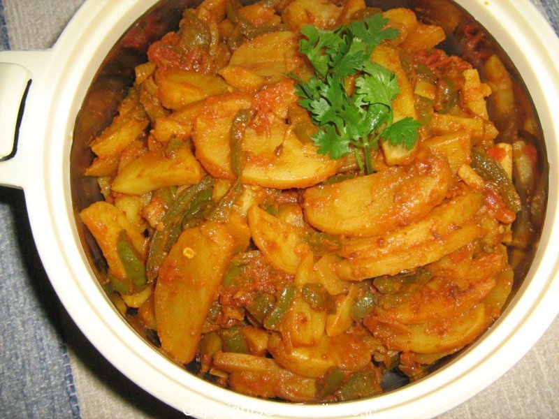 Potatoes and Capsicum tossed with tomatoes and spices.