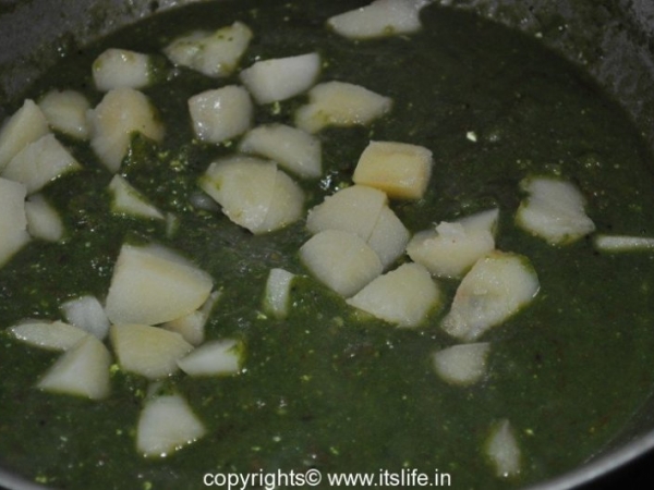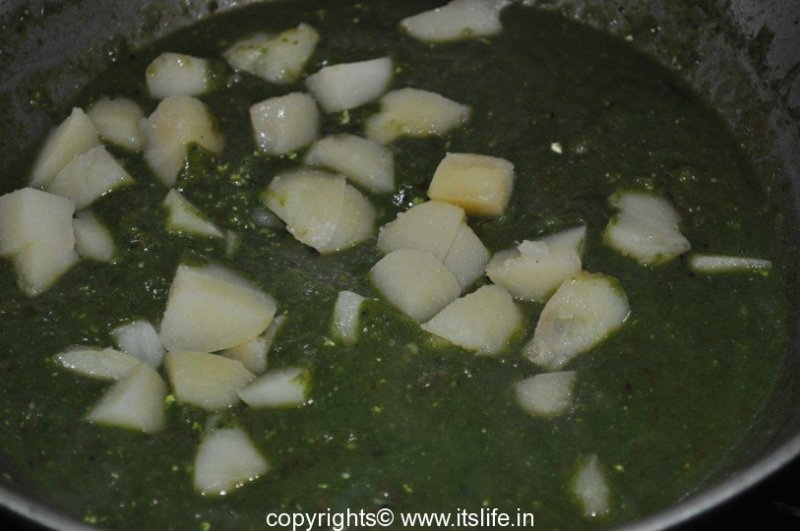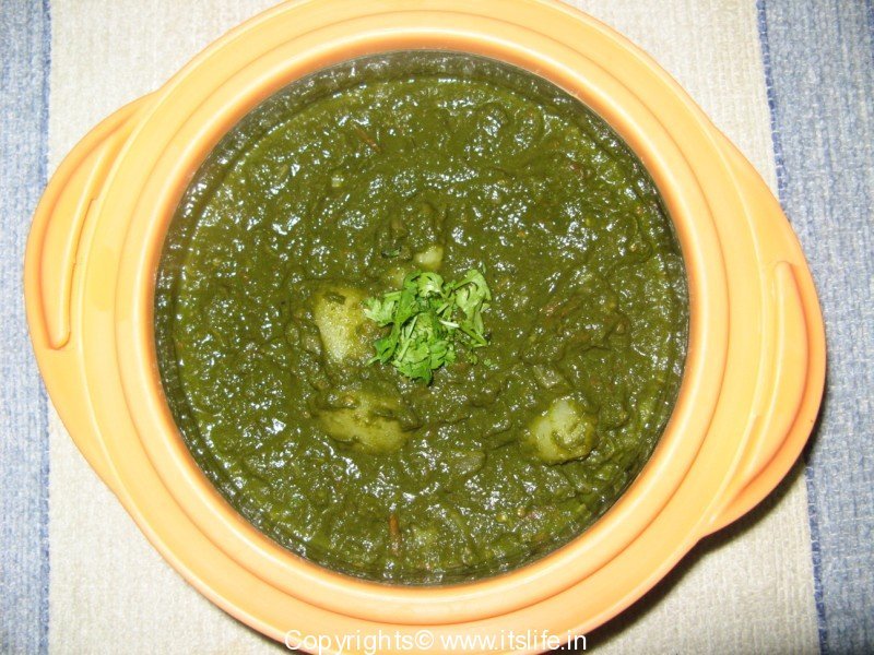 A side dish with gravy using Spinach and Potatoes. Alu Palak is a very popular dish of North India.