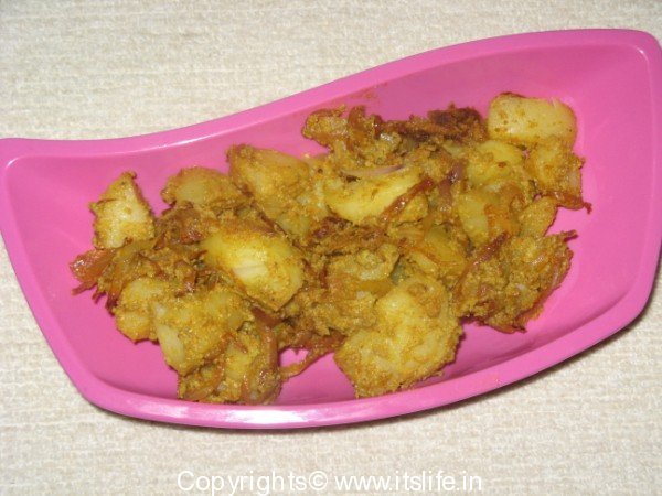 Grind the Poppy seeds and 2 Green Chilies with little water to a paste. Heat Oil. Fry sliced Onions till light brown. Add Salt, Chili Powder and Turmeric Powder. Add the Potatoes and fry till they turn light brown. Add Poppy seed paste and fry for a while. Pour 1 cup of water and two Green Chilies (slit). Lower the flame and cover with a lid. Cook till potatoes are done and the gravy is semi dry.