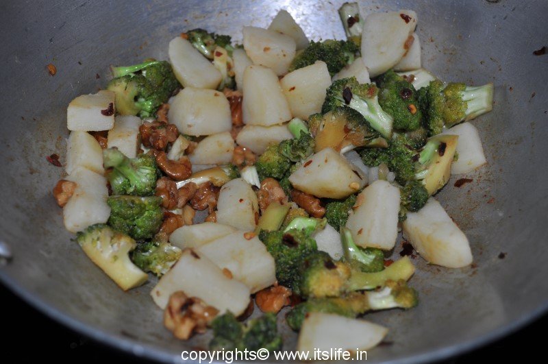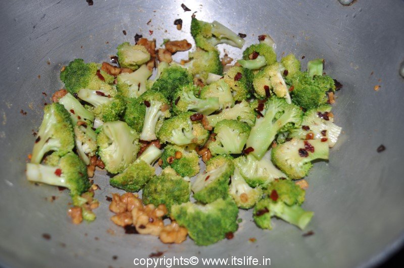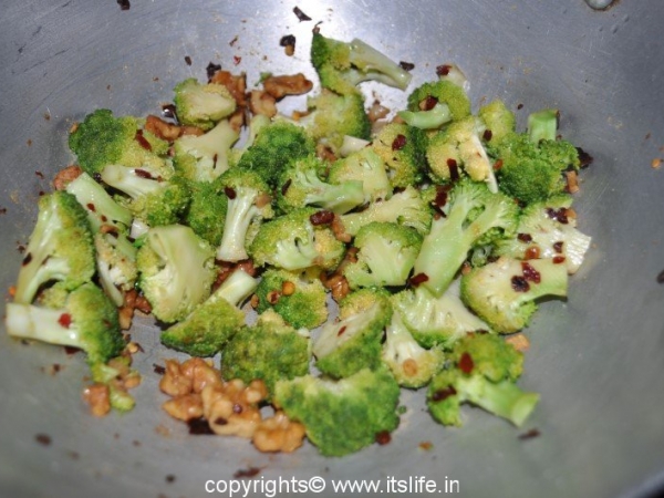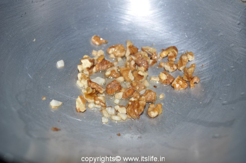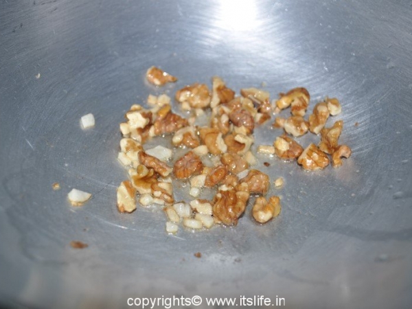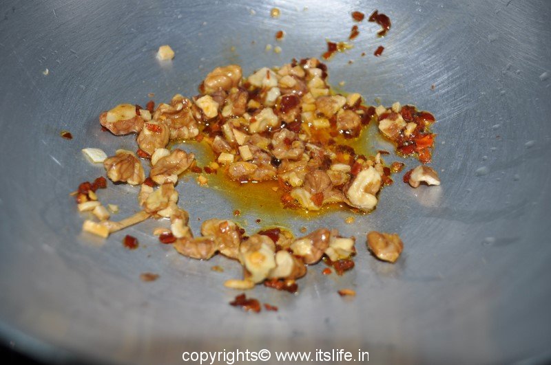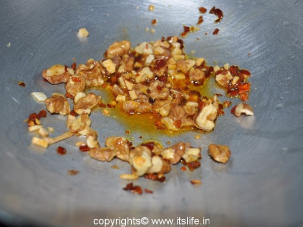 Heat Oil and add Walnuts and stir for 30 seconds.