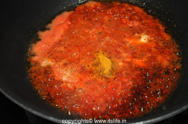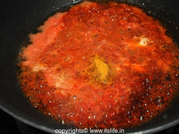 Heat pan, add Oil, Jeera Powder, Ginger Powder, Chili Powder, and Turmeric Powder.