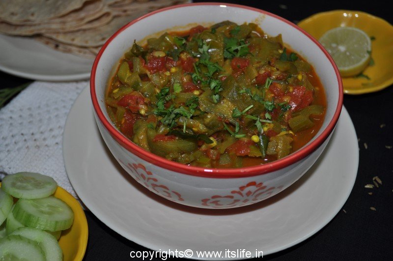 Cook until the vegetable is soft. Add Lemon juice. Remove to a serving dish and garnish with Coriander leaves.