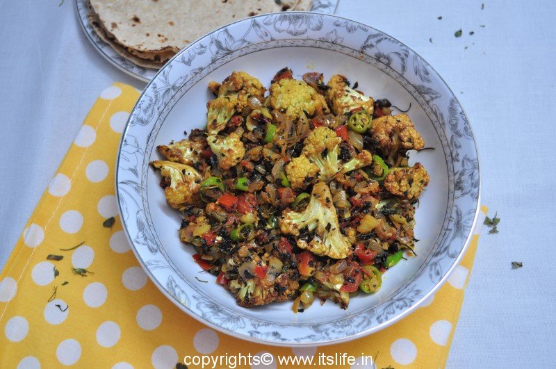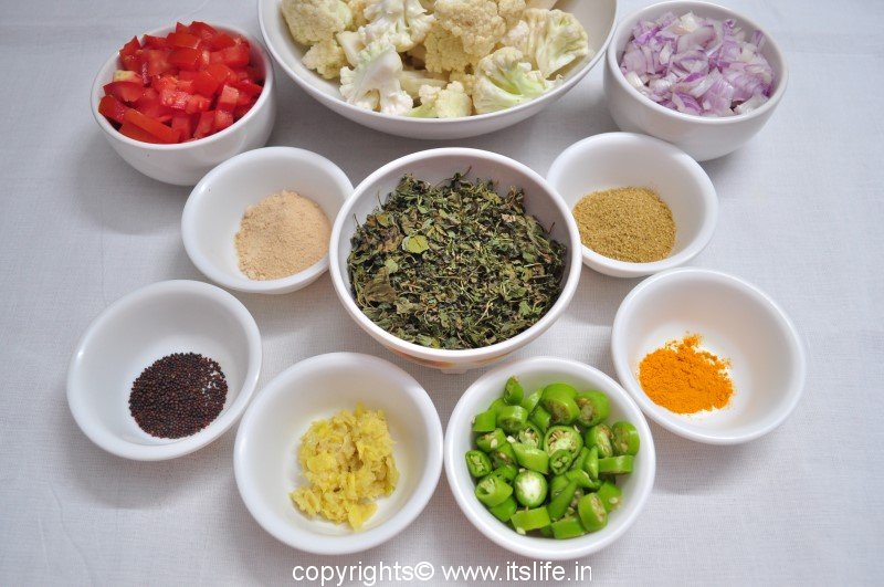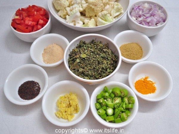 Gobi Kasoori Methi is a dish where Cauliflower is cooked with dry fenugreek leaves powder and other spices.