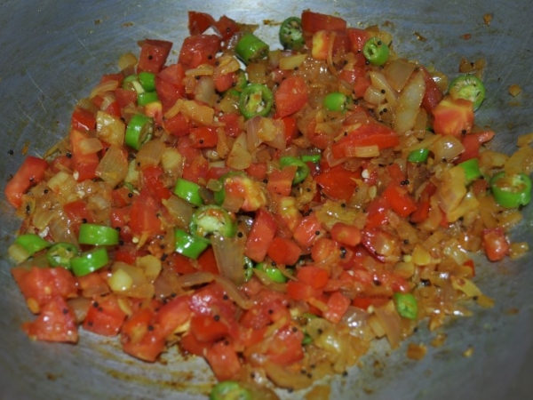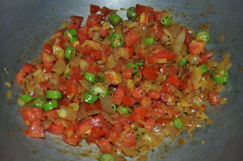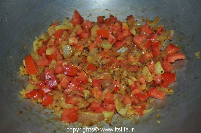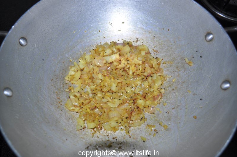 Heat 1-2tbsp Oil and add Mustard Seeds, when they splutter, add Turmeric Powder, Ginger-Garlic paste, Onions and sauté until they turn light brown.