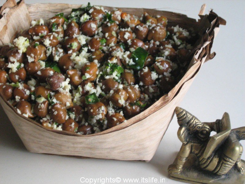 Gugri is a Bengal gram/brown chickpea based side dish usually prepared as offerings to gods and distributed among the devotees. Gugri is also known as Sundal and Usali.