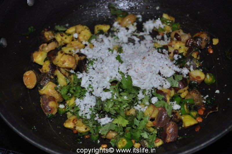 Remove to a serving bowl and serve Halasinabeejada Palya with your choice of Indian Bread or with Rice and Saru/Rasam.