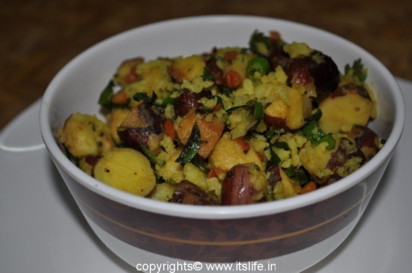 Remove to a serving bowl and serve Halasinabeejada Palya with your choice of Indian Bread or with Rice and Saru/Rasam.