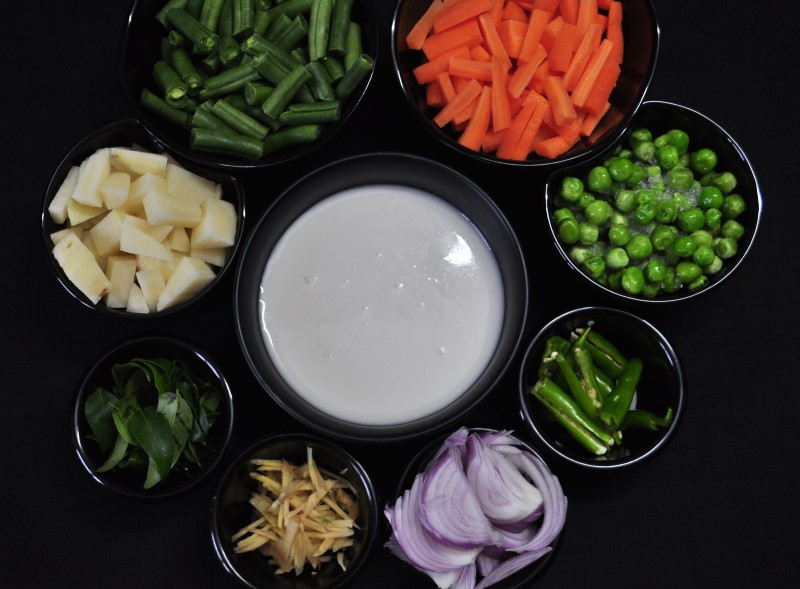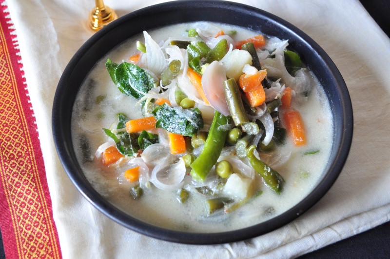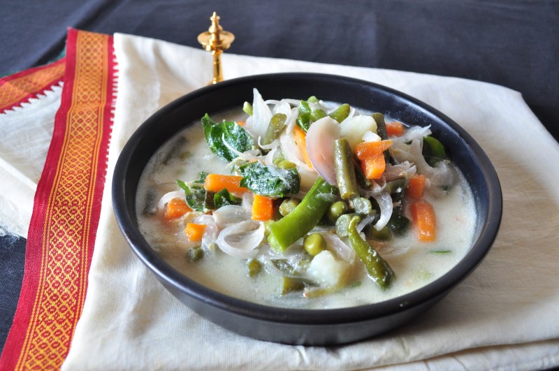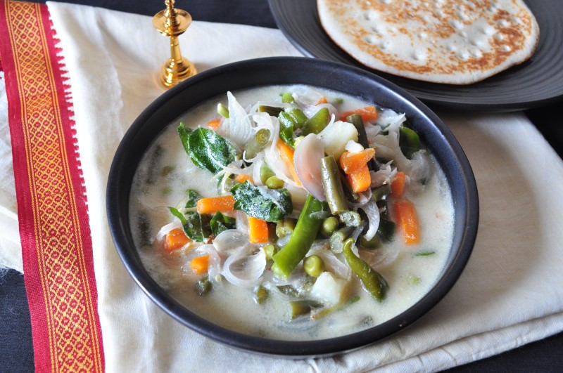 Ishtew is a mixed vegetable stew from the state of Kerala. Vegetables are simmered in coconut milk and this is served with a crepe/pancake called Appam.