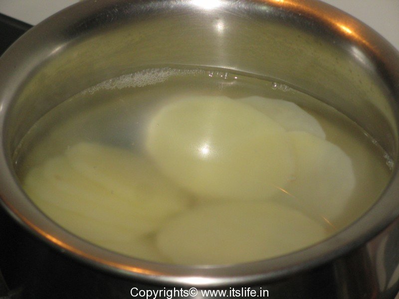 Boil Potato roundels until cooked and keep it aside.