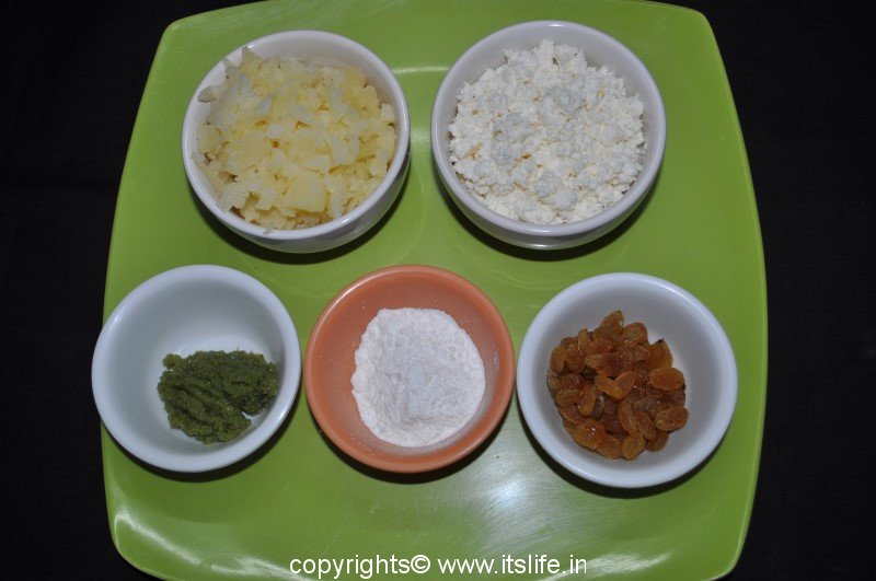 Mix the ingredients for the Kofta except for Raisins. Divide into Lemon sized balls. Stuff two or three Raisins in each of the balls.