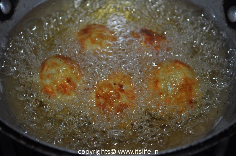 Pour the gravy over it. You can also cook the Koftas in the gravy.