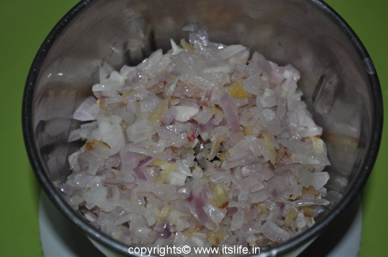 Heat 1 tbsp Oil and saute Onion, Ginger, and Garlic. Grind to a paste and keep aside.