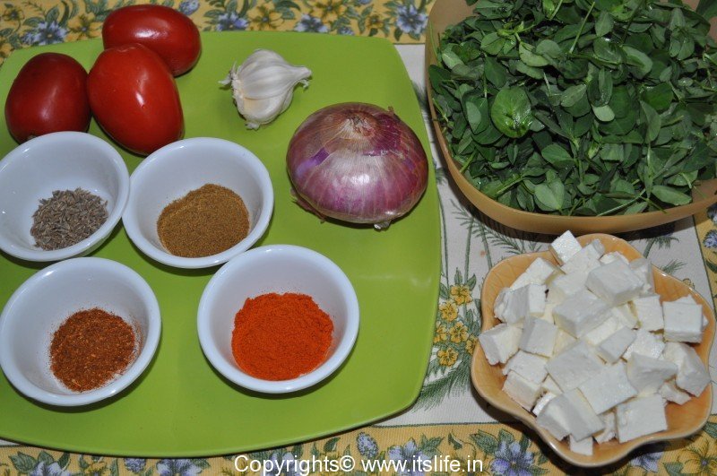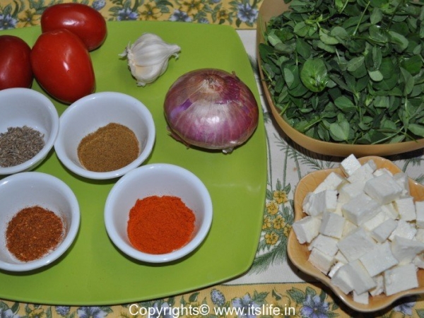 Methi Chaman is a side dish prepared using Cottage cheese and Fenugreek leaves.