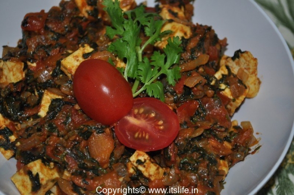Methi Chaman is a side dish prepared using Cottage cheese and Fenugreek leaves.