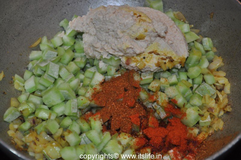 Add Masala paste, Chili Powder, Salt, and Garam Masala Powder and mix well.