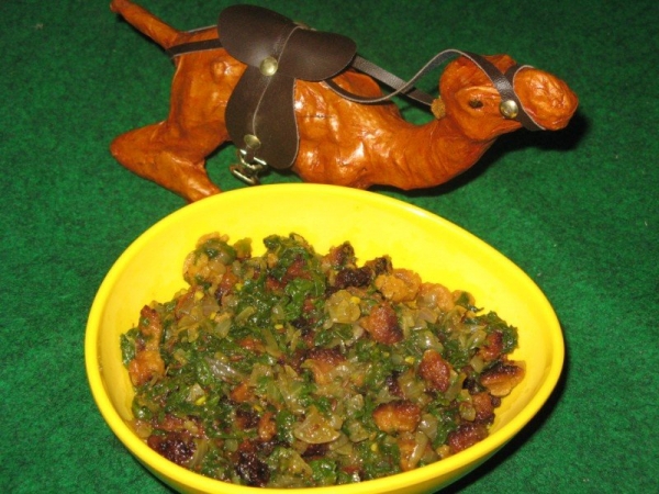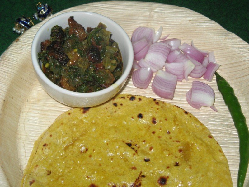 Green Gram dumplings cooked in Spinach gravy. A dish from Rajasthan.