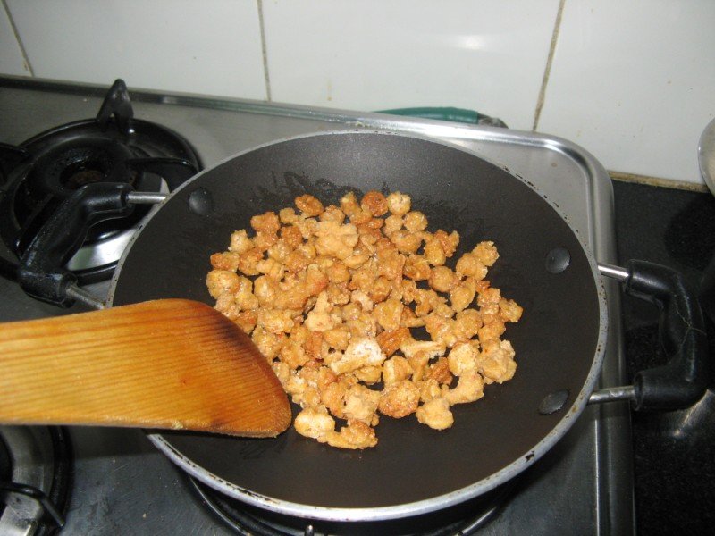 Heat half a tablespoon Oil and shallow fry the Mangodis. Remove and keep aside.