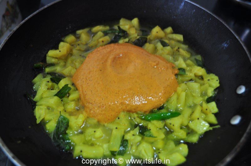 Add Tamarind pulp, Masala paste, Salt.