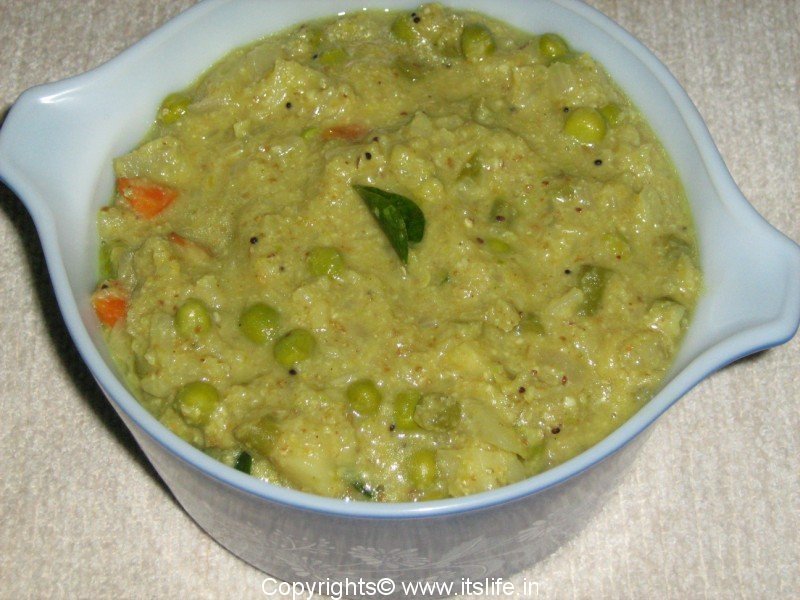 Sagu is a side dish very popular in Karnataka, which is served along with Poori/deep fried bread or Dosa/Crepe. This is a dish wherein an assortment of vegetables are cooked in a coconut gravy.