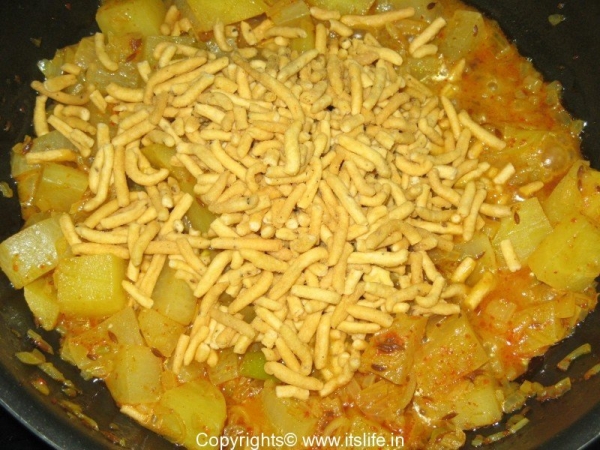 A very unique side dish prepared using Sev, which is a deep fried crispy snack.