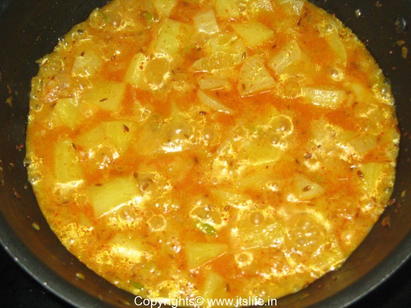 Add Salt, Chili Powder, Coriander Powder, Curds and cook for a minute.