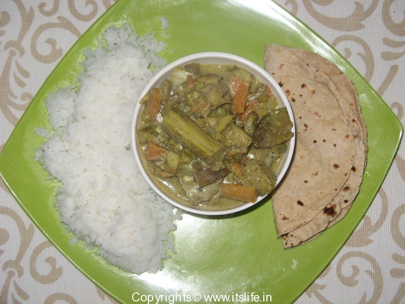 This is a Bengali dish with lots of vegetables. This is prepared on weddings and other celebrations like Durga Pooja during Dasara.