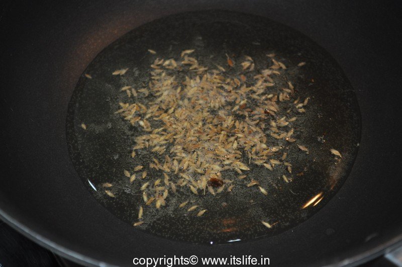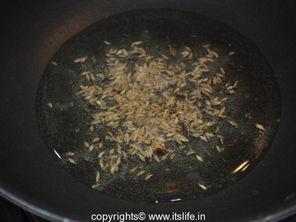 Keep aside the remaining Onion mixture. Heat Oil and add Jeera.