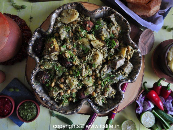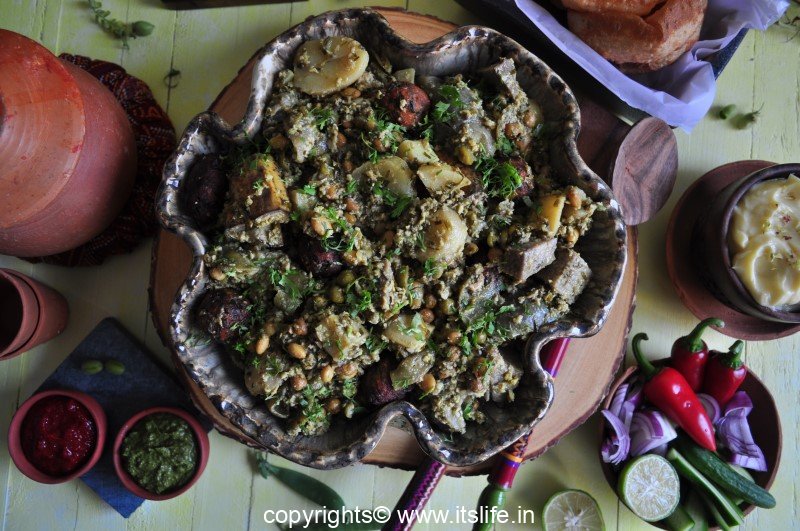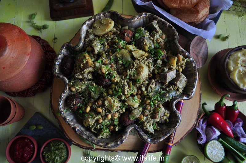 Undhiyu is a traditional Gujarati dish prepared using “n” number of ingredients. The main ingredients like the Winter Beans, Green Chikpeas, Green Pigeon Peas are available only during winters. The main Undhiyu is derived from the fact that the vessel used to cook Undhiyu is buried in the ground upside down (undhu) and the heat is applied from the top. A unique and healthy dish that is rich in proteins, vitamins, and carbohydrates. The medley of various spices and vegetables with deep fried dish in-between is a fantastic gourmet experience.