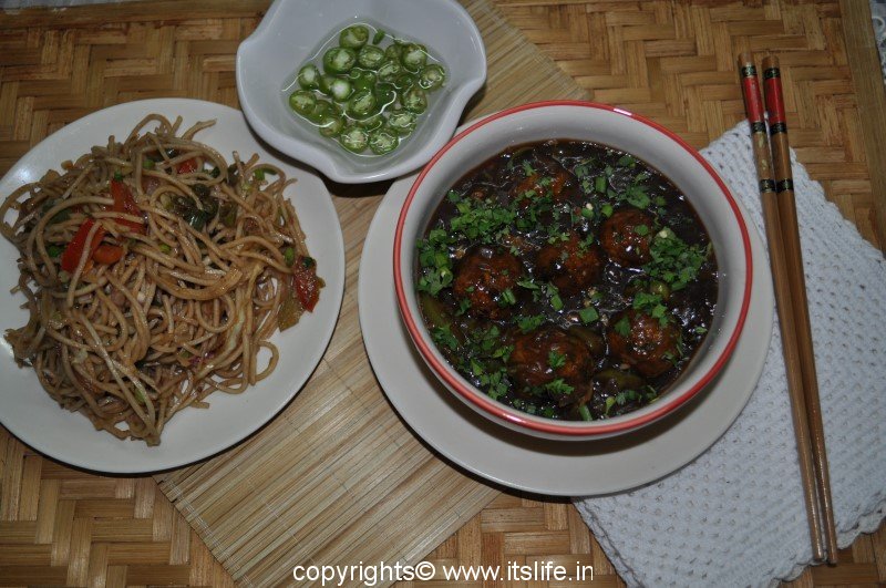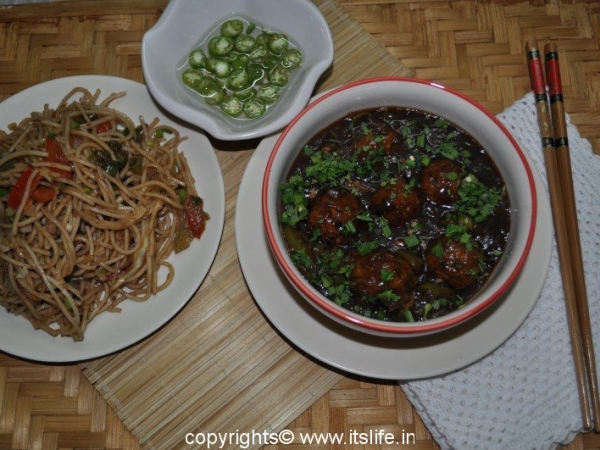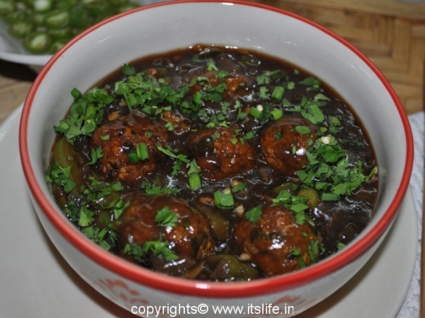 Vegetable balls in hot garlic sauce is a Chinese side dish very popular in India. Goes very well with fried rice and vegetable noodles.