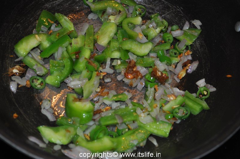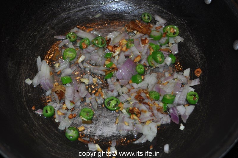 Heat Oil and add Ginger, Garlic, Green Chilies, and Onion. Saute for a minute.