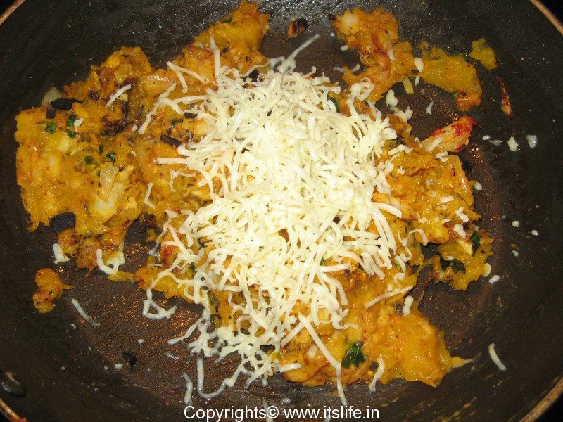Add Cheddar and Mozzarella Cheese. Mix well.