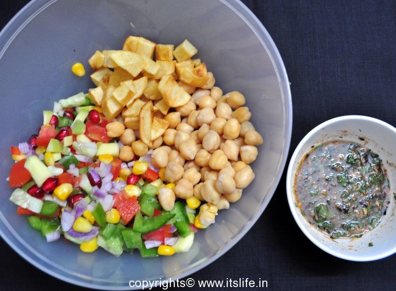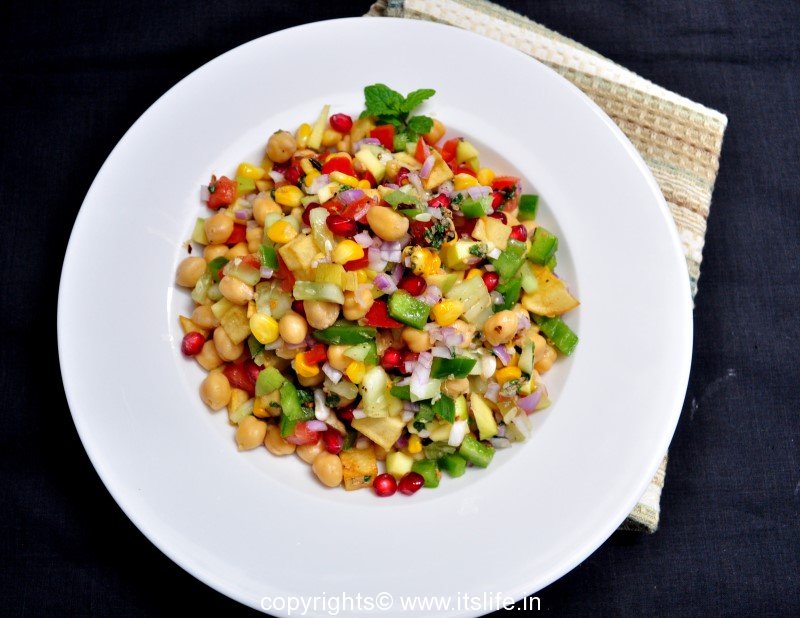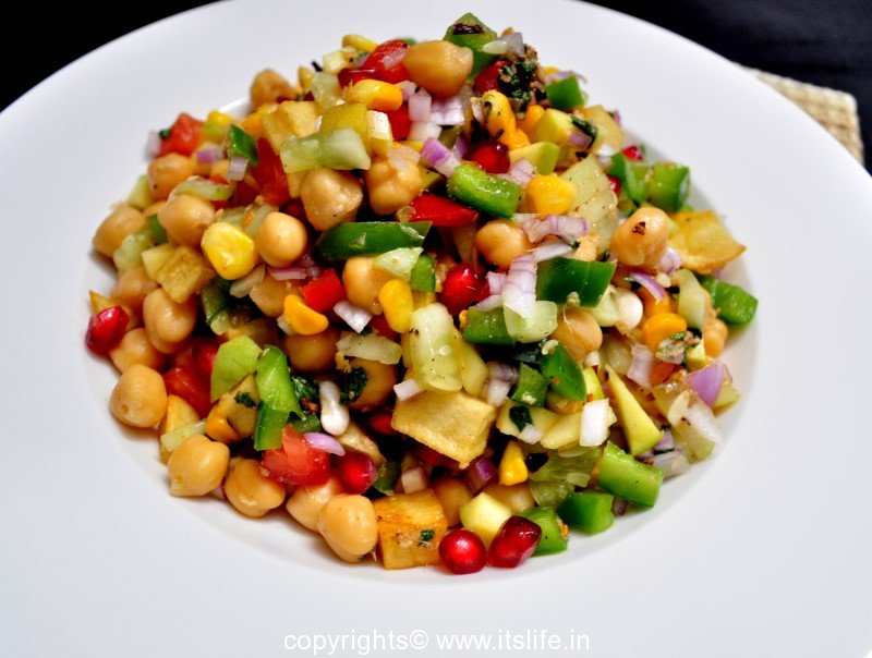 In a large bowl mix the Kabuli Channa and all the other ingredients.