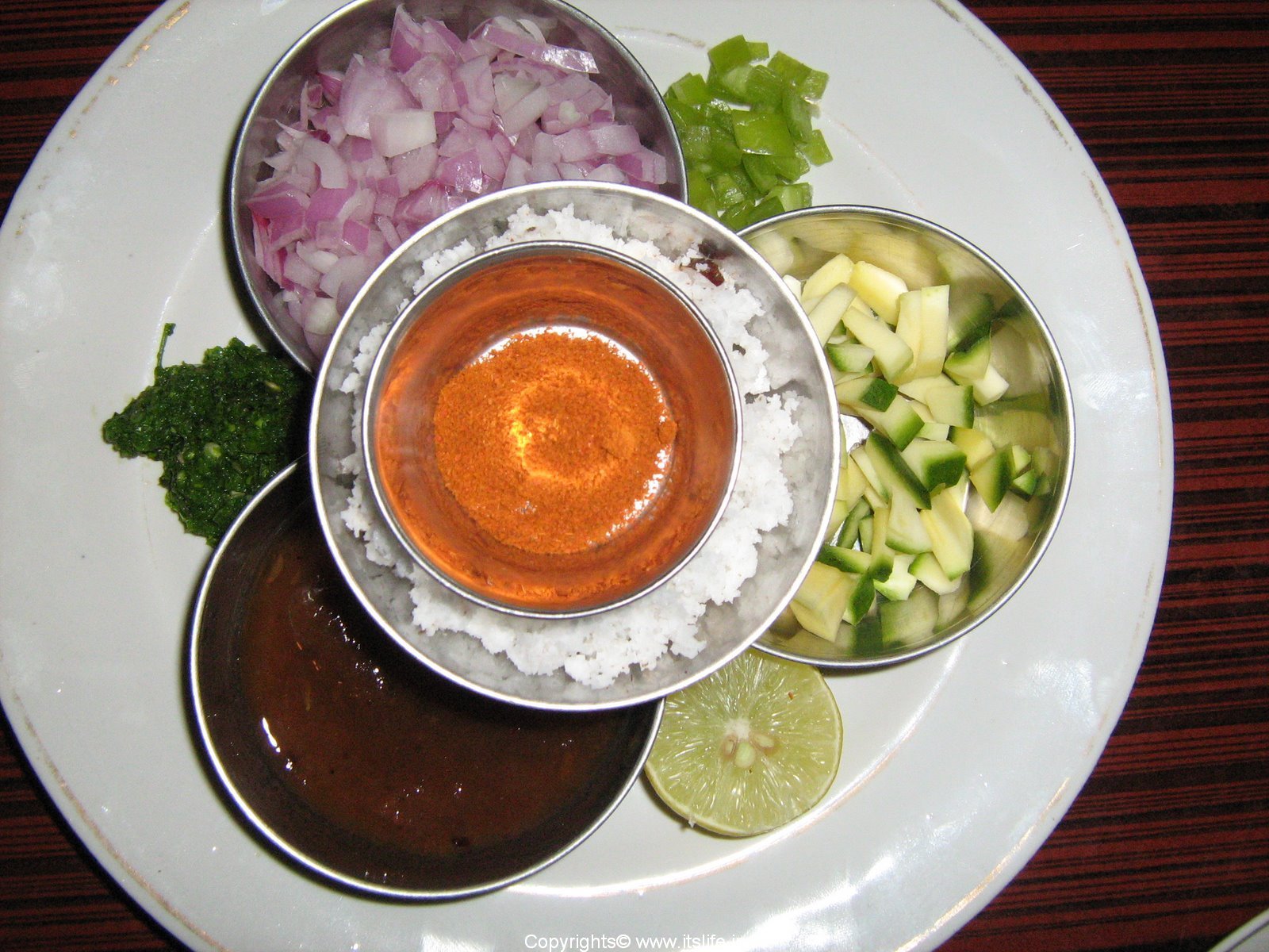 A tangy to taste and good to look at dish, Misal is prepared using Peas or Moth Beans and served with a variety of toppings. This is a Misal Chat served with or without Pav (bread).