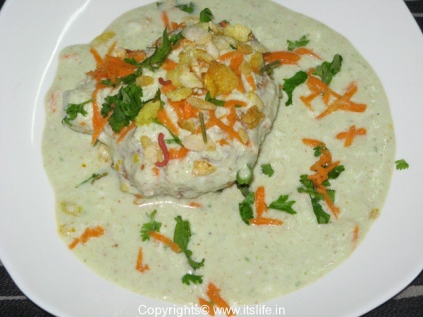 Garnish with Sev / Boondi, Carrot and Coriander and serve immediately.