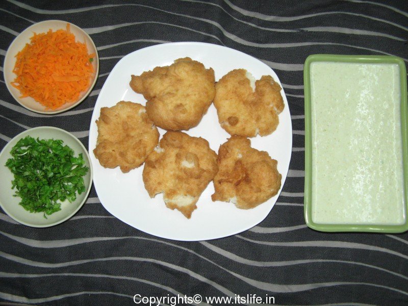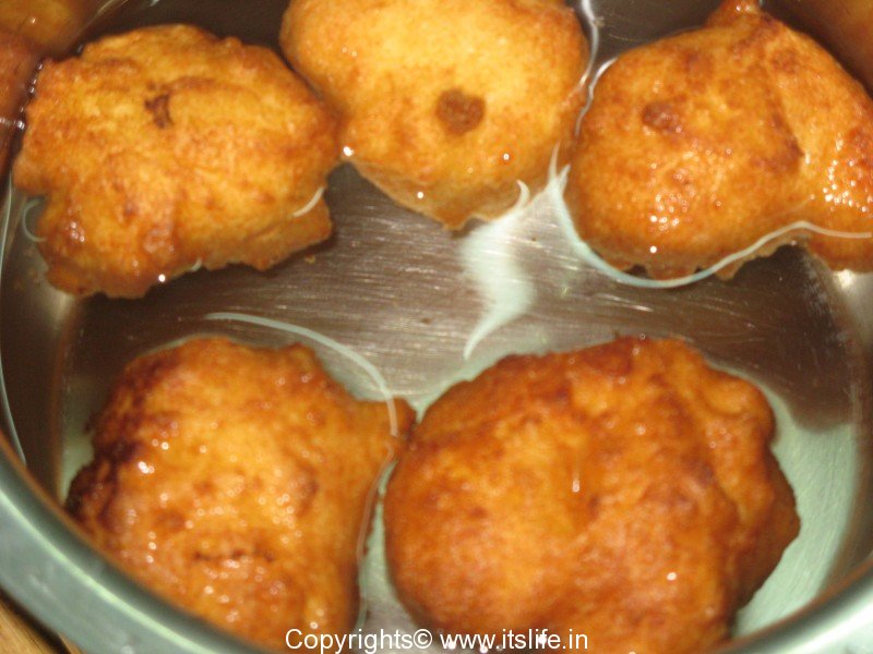 Dunk the vadas in water for half an hour. Remove and squeeze each one of them using the palms.