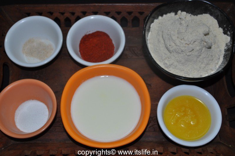 Mix all the the ingredients in a mixing bowl. Add water to make a dough.