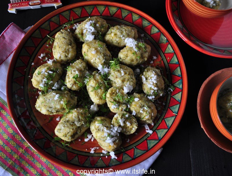 Lentils based tasty steamed balls. Nuchchina Unde is served along with a curry called Majjigehuli in South Karnataka, India.