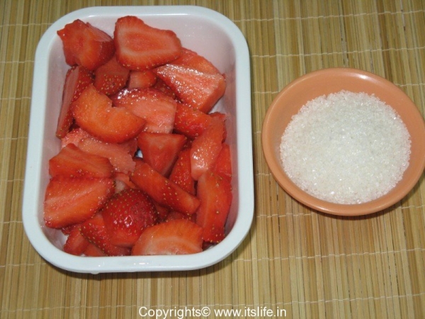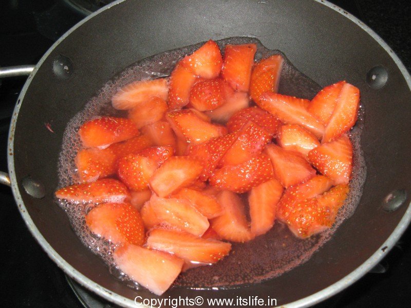 Take Strawberries in a thick bottomed pan and add half cup water.