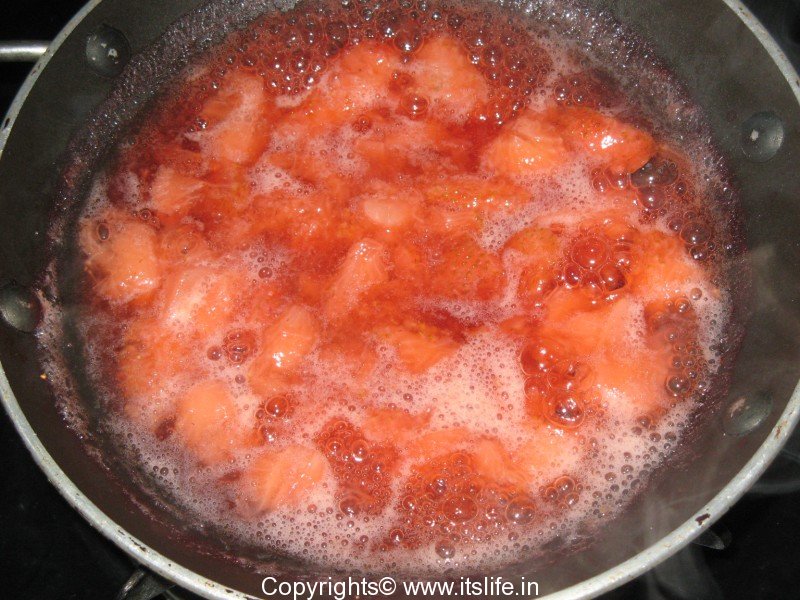 Let it come to a boil. Simmer for another 5 to 6 minutes until you get a thick consistency. Remove to a bowl or an airtight container.